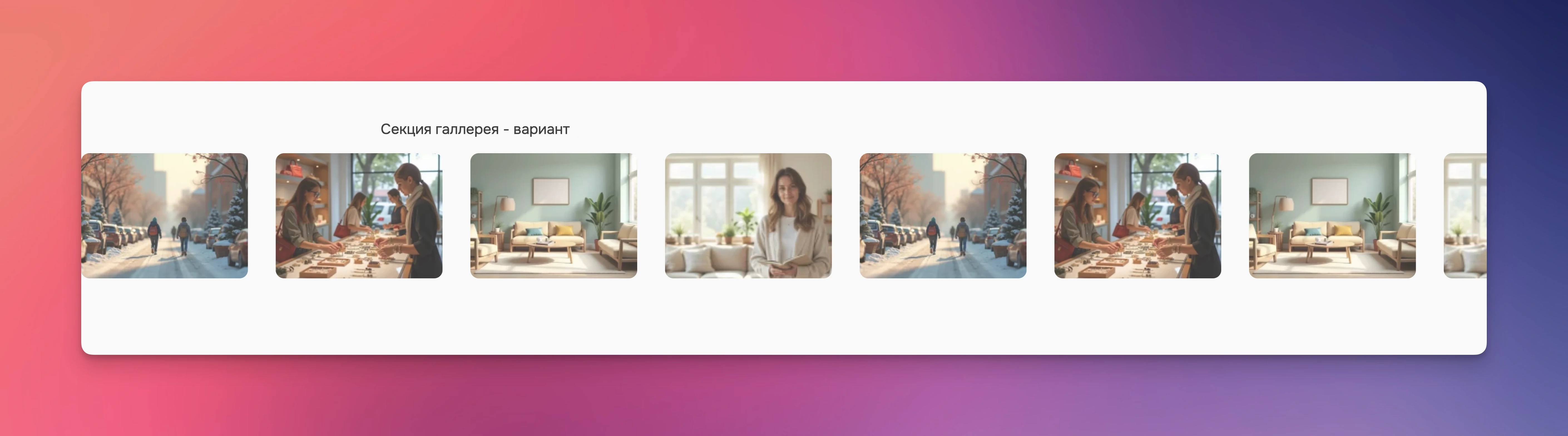 Секция представляет собой горизонтально прокручиваемый слайдер фотографий.