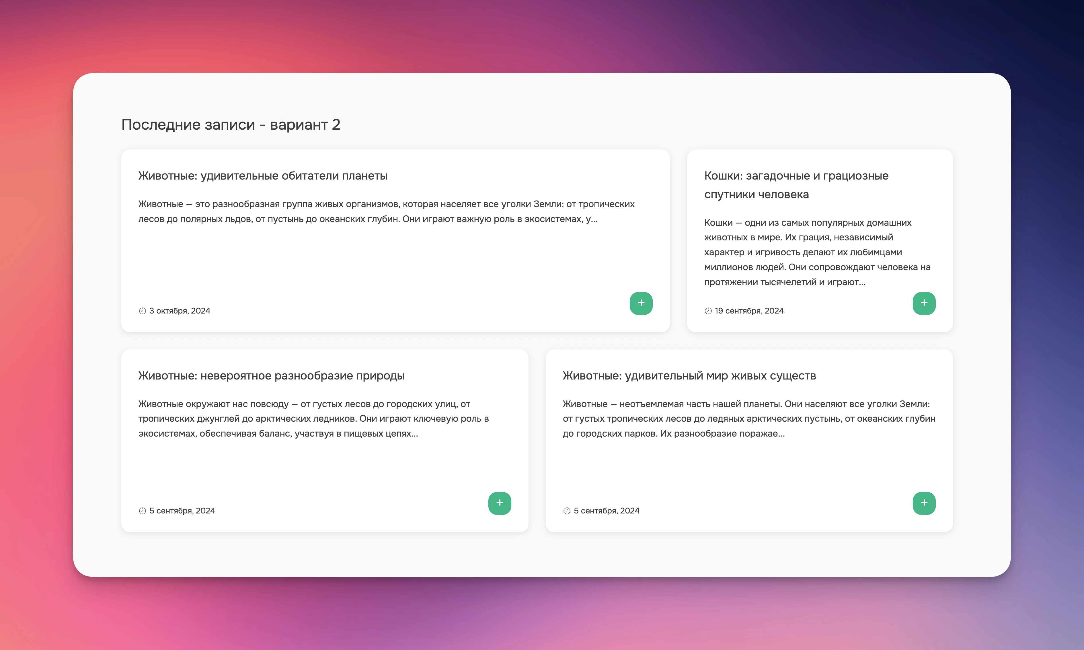 • После выбора категории (рубрики) секция автоматически заполняется последними записями из выбранной категории (рубрики).