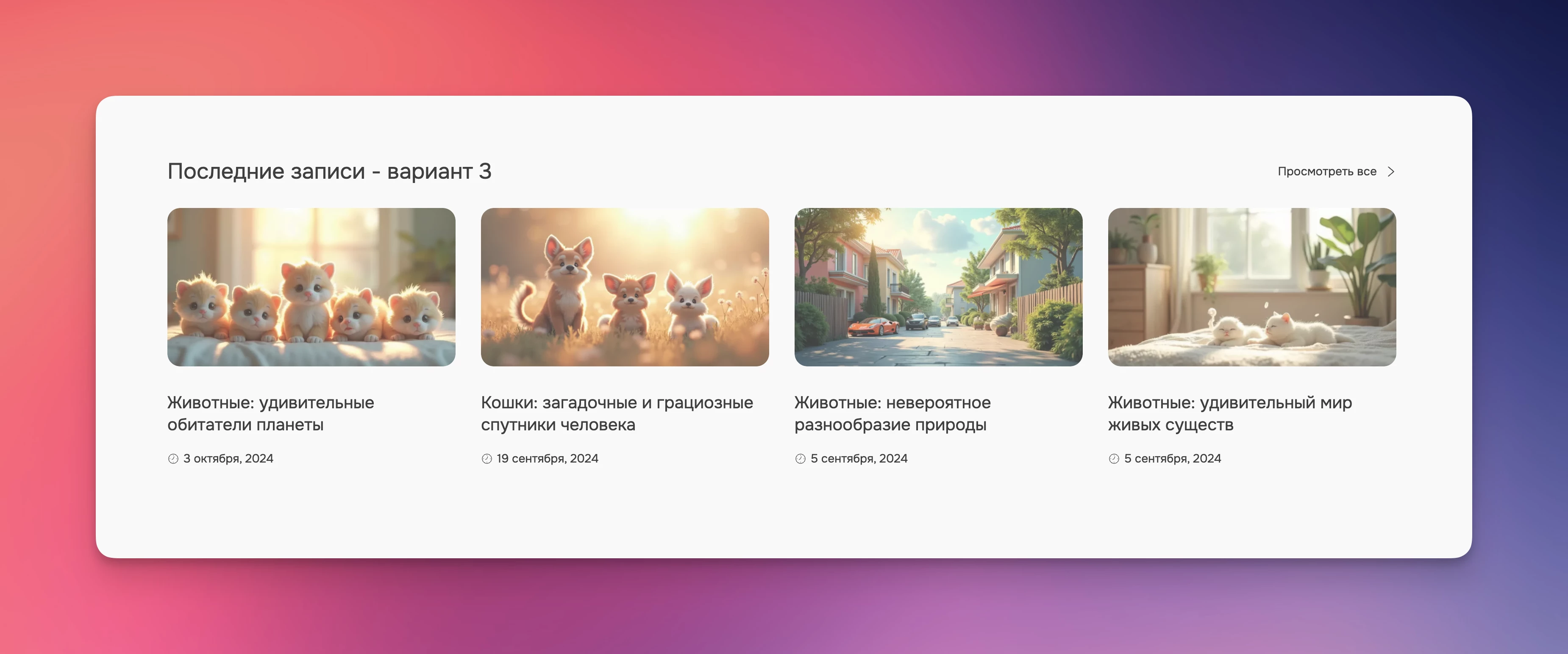 • После выбора категории (рубрики) секция автоматически заполняется последними записями из выбранной категории (рубрики).