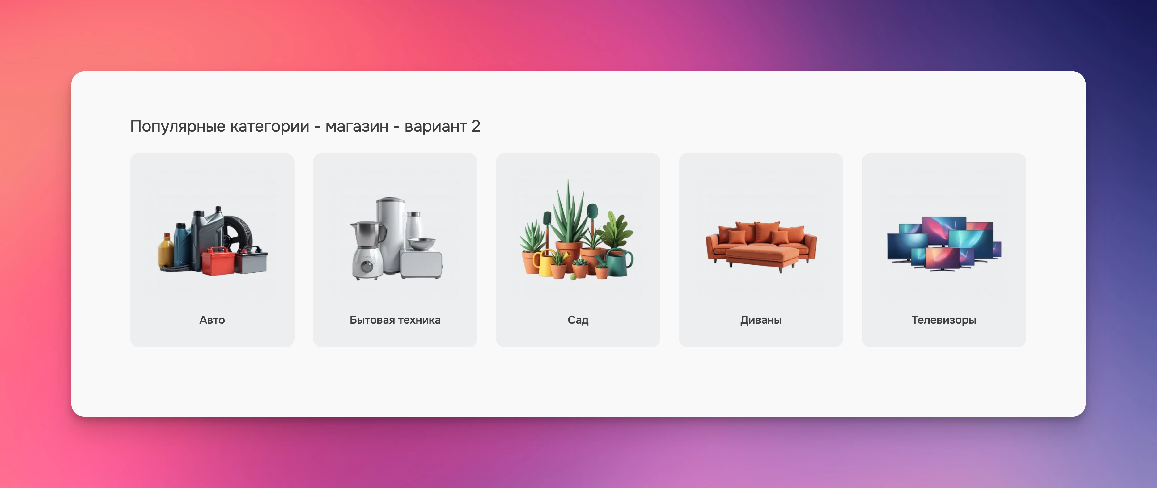 Секция выводит указанные в настройках секции категории магазина (WooCommerce).