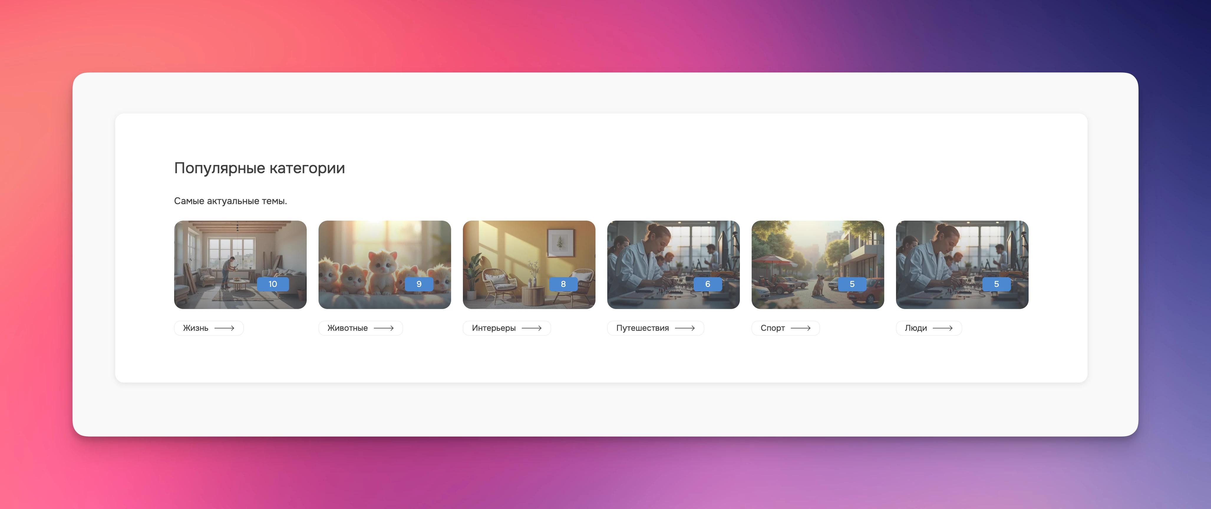 Секция позволяет отображать популярные категории, упорядоченные по количеству записей, от самой популярной к менее популярным.