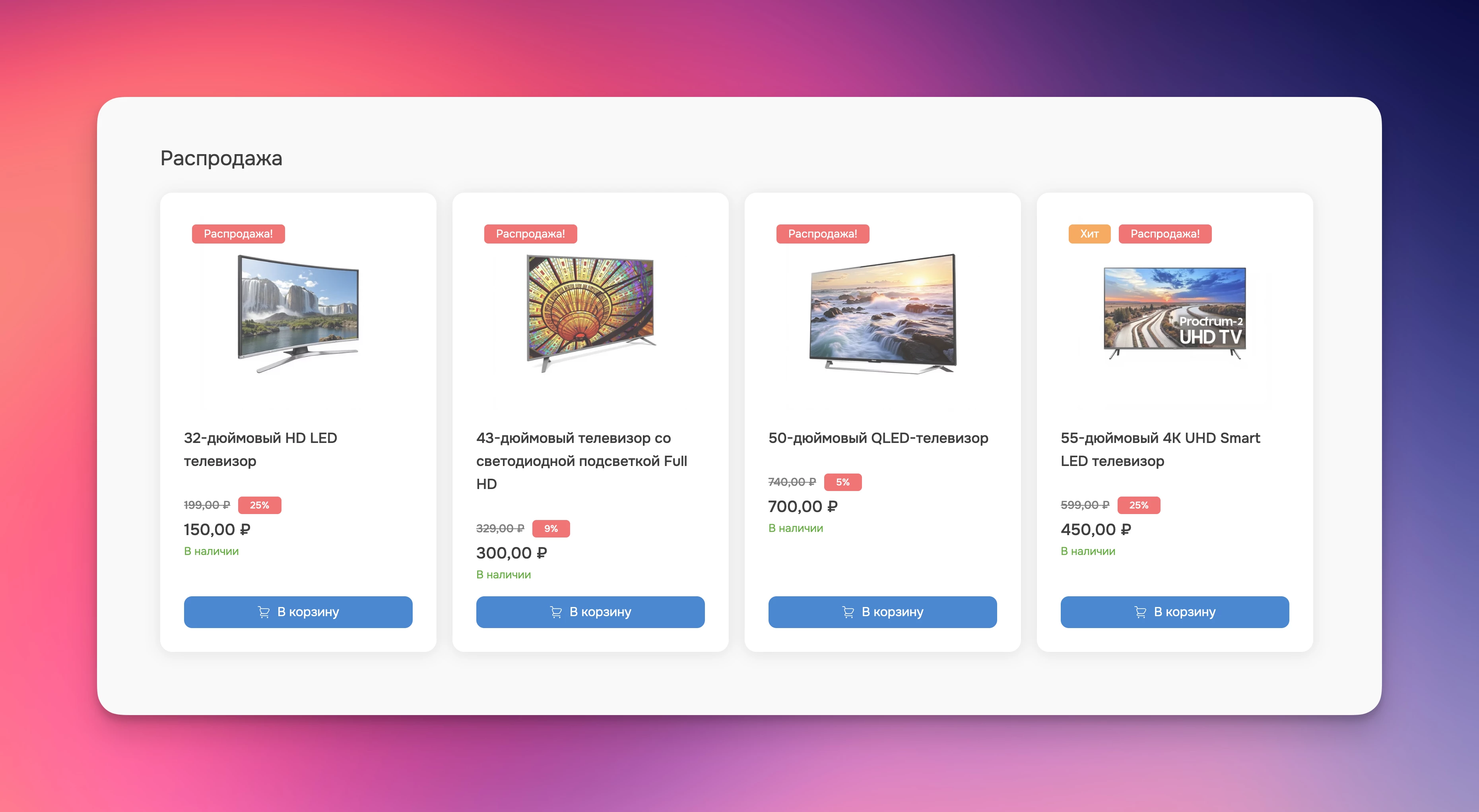 Секция позволяет выводить товары, продающиеся со скидкой.